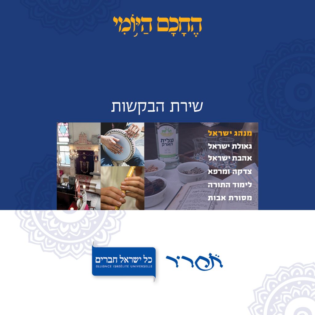 This booklet deals with the singing of requests, which is practiced in many synagogues and communities on cold, dark winter nights. From late at night until dawn, people gather and sing unique piyyutim. The booklet has three chapters with the characteristics of the singing of requests – a chapter of poetry, a chapter of supplication, and a chapter of redemption. Each chapter contains Psalms alongside piyyutim and wise sayings. This booklet is the result of a collaboration with "Tahrir" and the singing of requests performance.